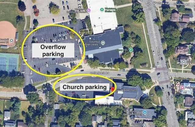 Our main entrance and parking lot is at the back of the building, which is accessible via Hollenback Road. The first couple rows should be reserved parking spaces available for those with disabilities, older adults, and visitors. If the parking lot is full, you are welcome to use the Whetstone Library parking just across Hollenback Road.